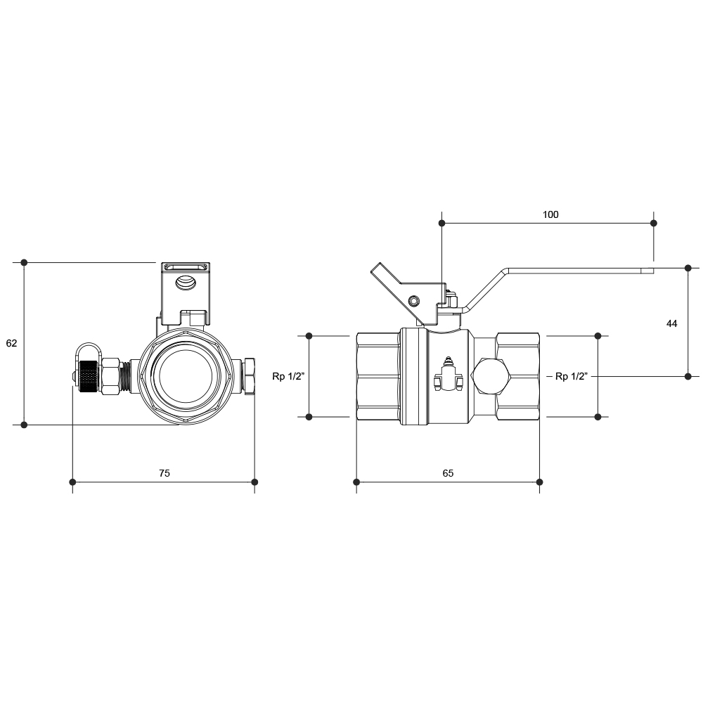 AGA Approved Ball Valve Lockable With Test Point FI X FI15MM