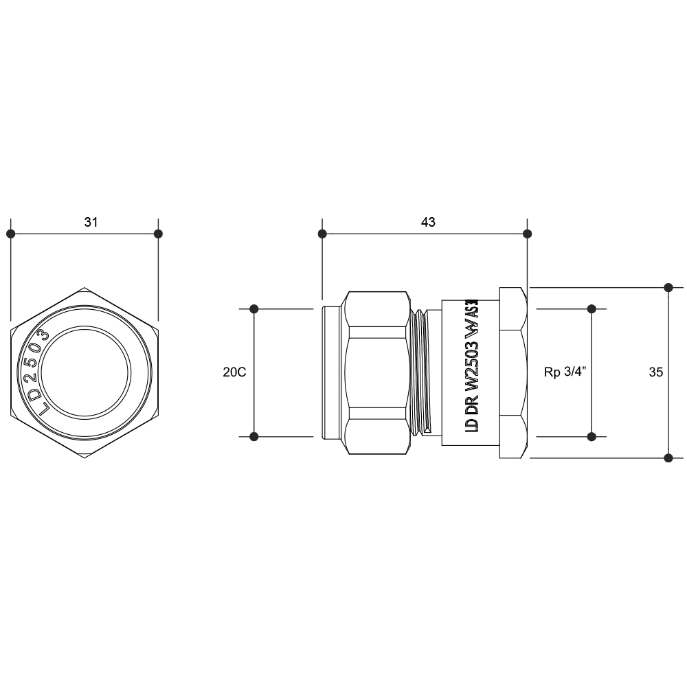 Copper Compression Union Brass 20FI X 20C