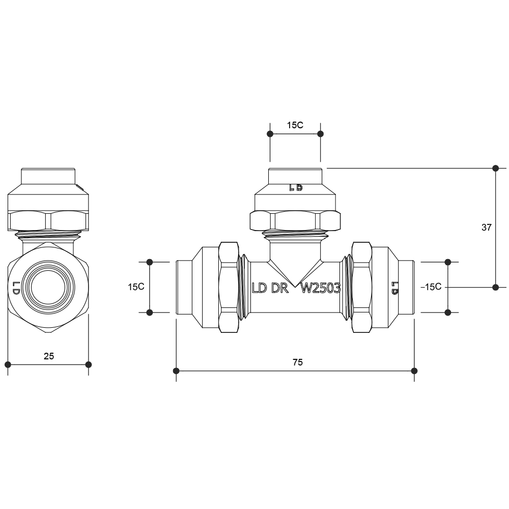 Flared Compression Tee Chrome Plated 15C X 15C X 15C