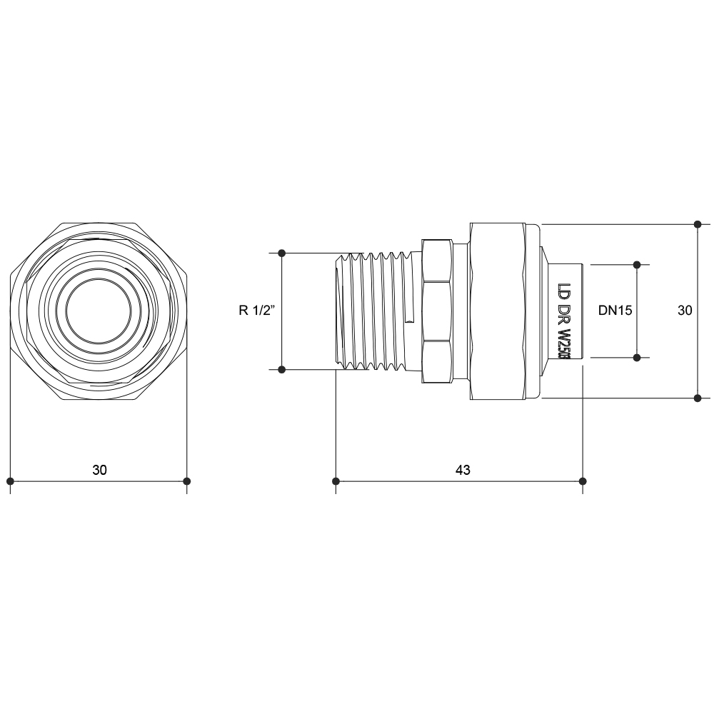 Barrel Union Brass CU X M 15MM