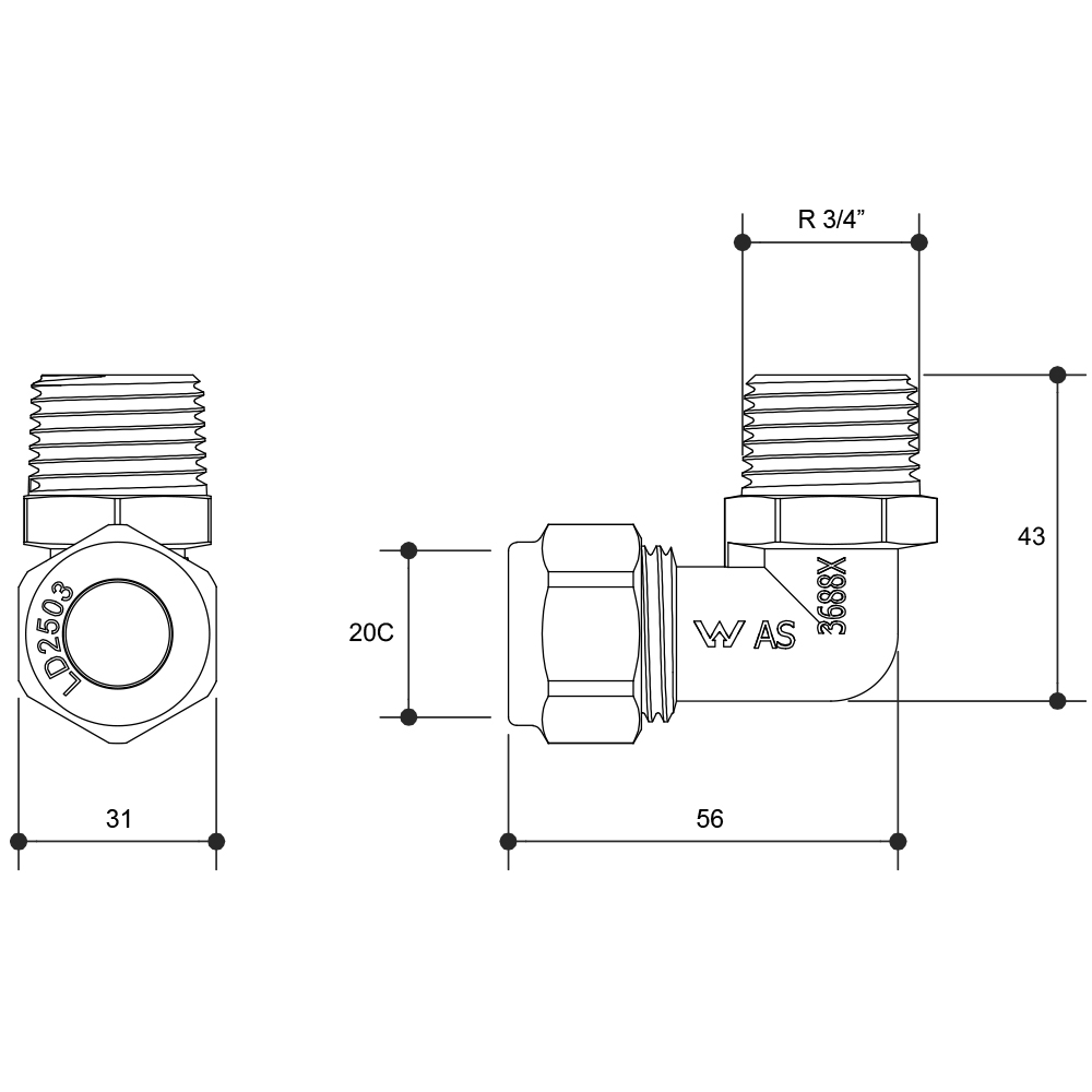 Nylon Compression Elbow Chrome Plated 20MI X 20C