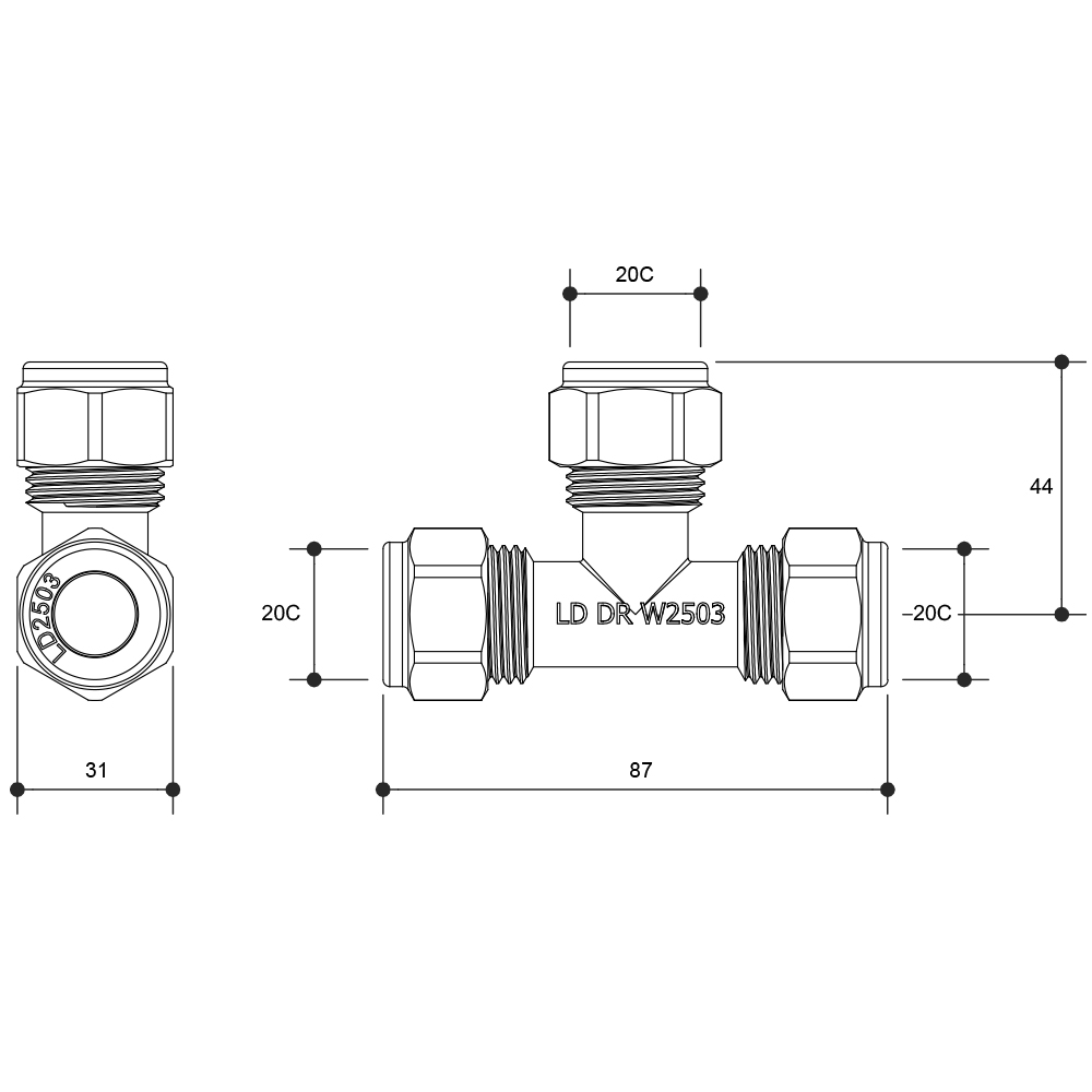 Nylon Compression Tee Triple Chrome Plated 20C X 20C X 20C