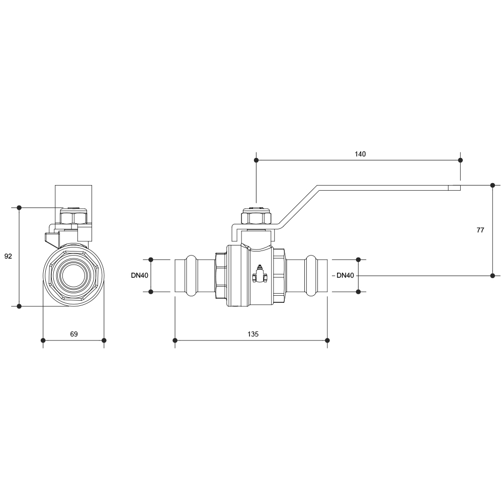 Watermarked Ball Valve Press Fit Lever Handle DN40 X DN40 Lead Free