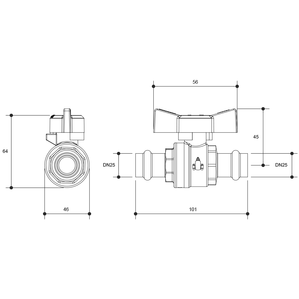 AGA Approved Ball Valve Press Fit Butterfly Hdle DN25 X DN25