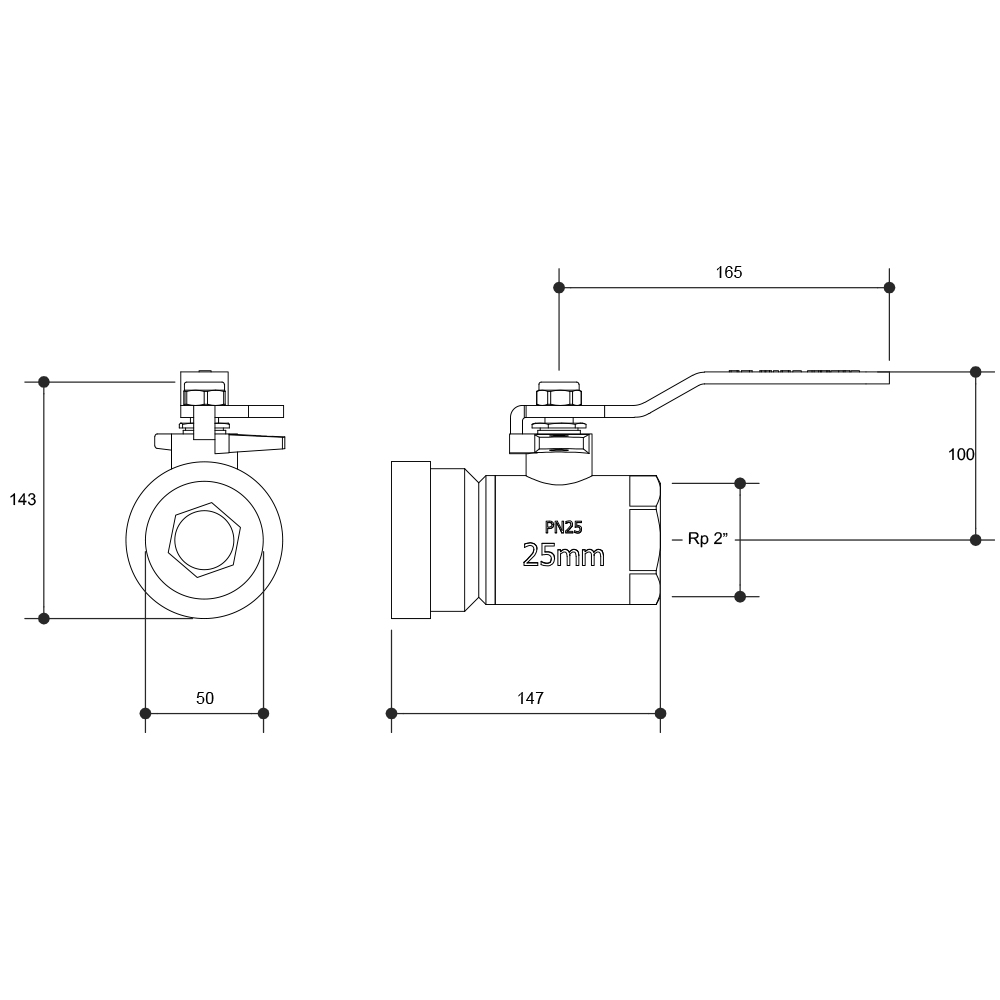 Ball Valve Mine SG Iron FI X Shoulder 50MM