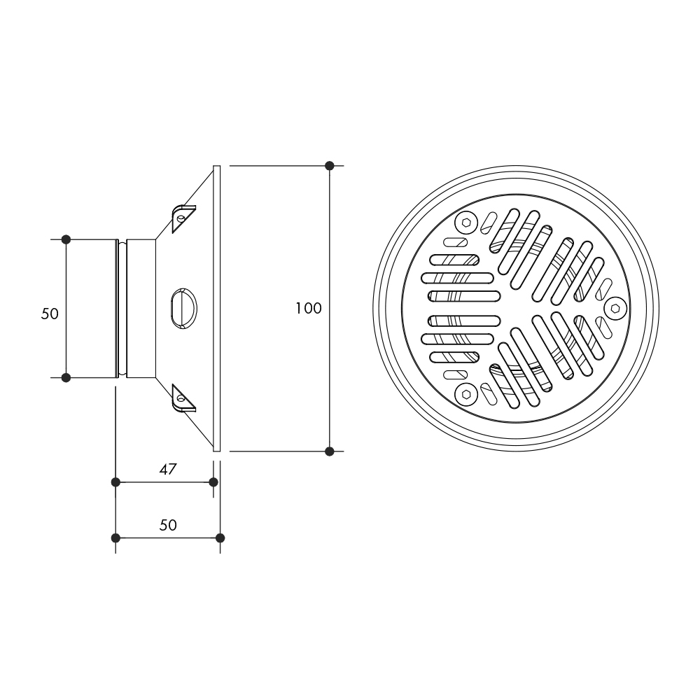 Vinyl Floor Grate 50MM Chrome Plated