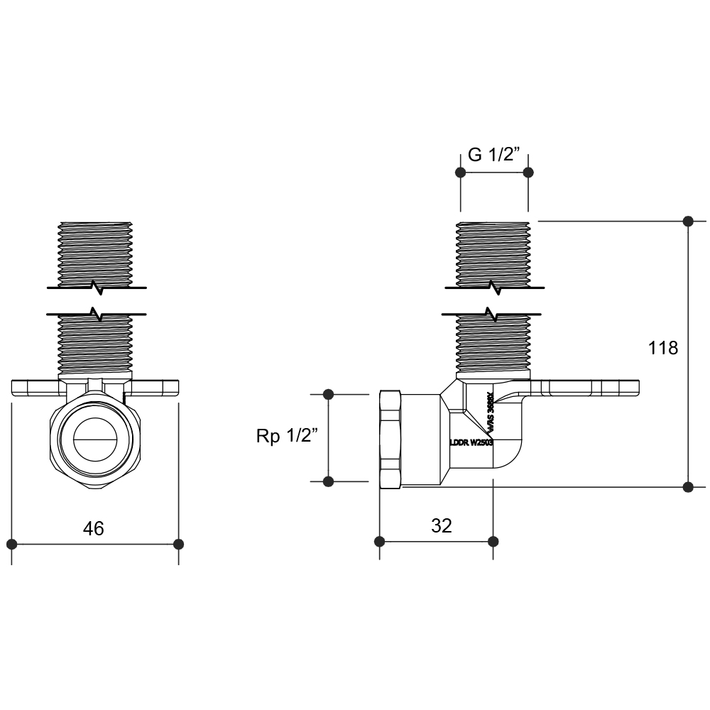 Elbow FI Front Lugged Brass 15FI X 15MI Extended