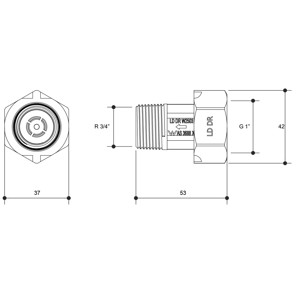 | Meter Coupling Brass 25FI X 20MI BSP With Check Valve Lead Free | MC5LF |