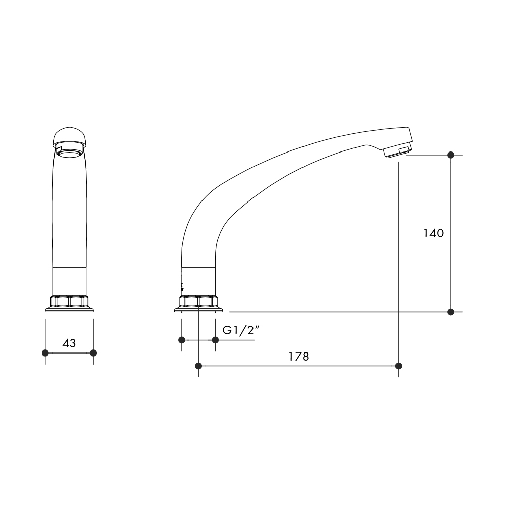 Swivel Spout Hob Cast Chrome Plated 180MM Lead Free