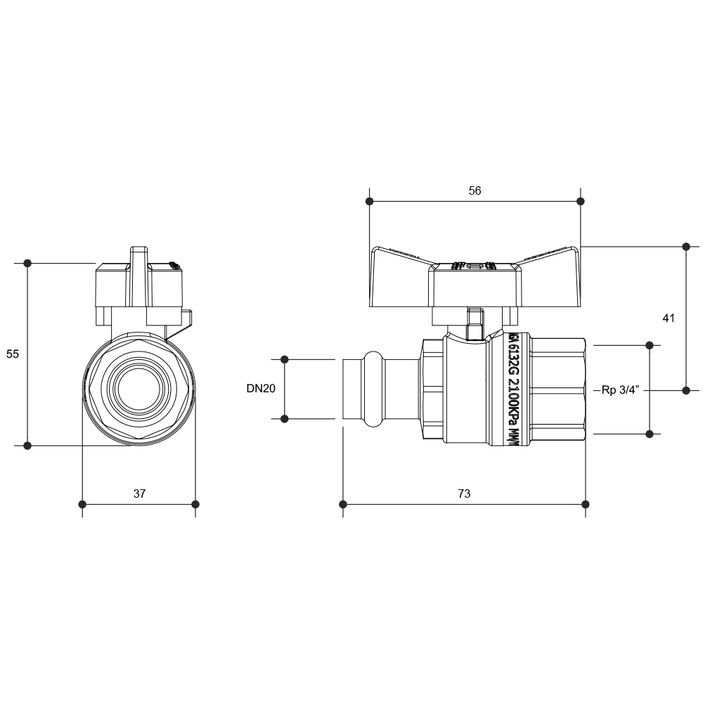 AGA Approved Ball Valve Press Fit Butterfly Handle DN20 X 20FI
