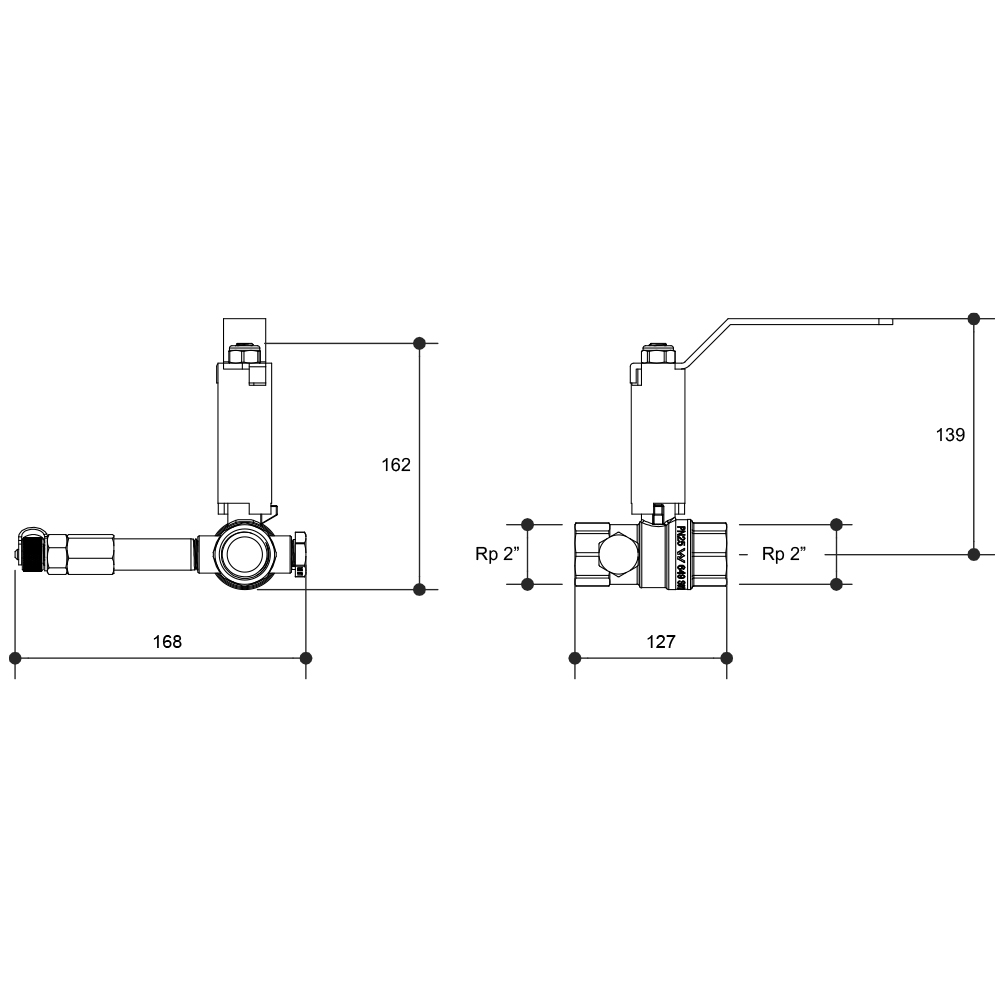 Watermarked Ball Valve HVAC with Extended Handle And Extended Test Point FI X FI 50MM