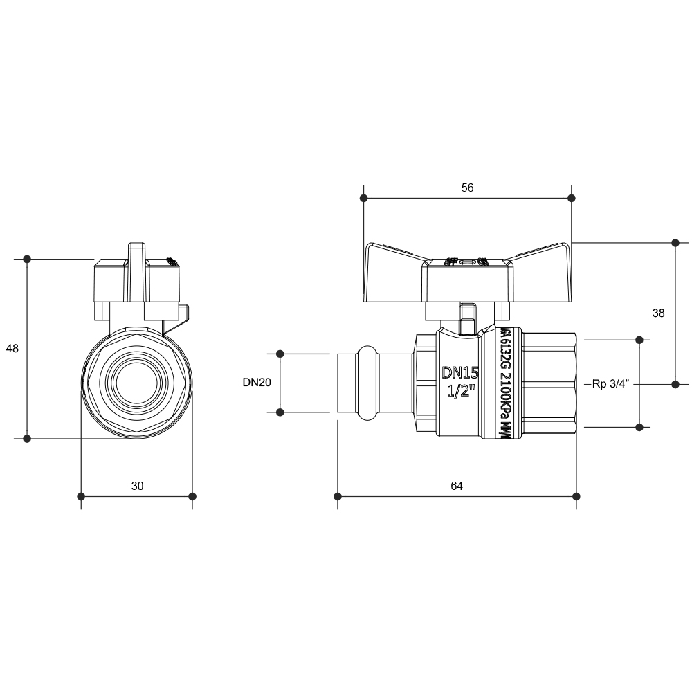 Watermarked Ball Valve Press Fit Butterfly Handle DN15 X DN15 Lead Free