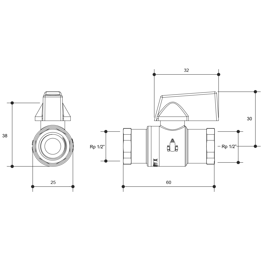 Watermarked Mini Ball Valve Chrome Plated With Handle FI X FI 15MM