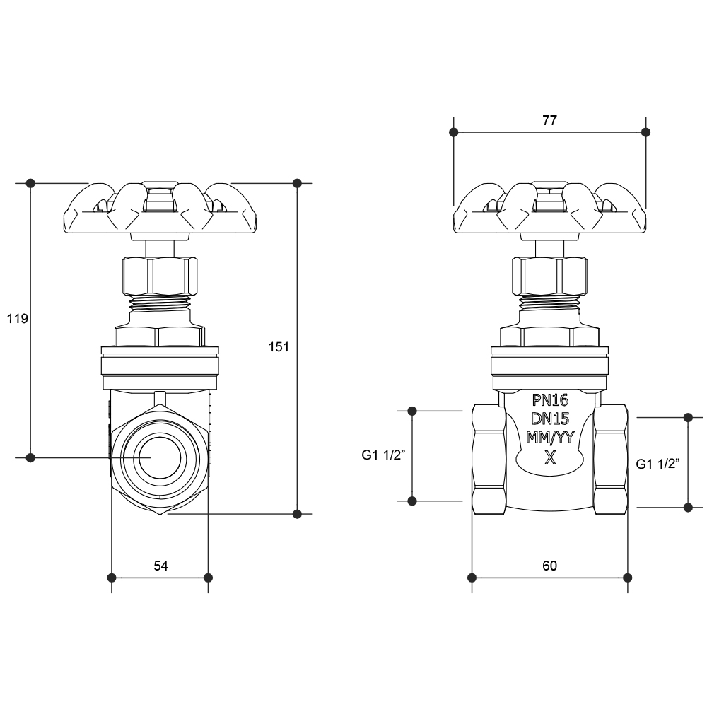 Gate Valve General Purpose Brass 40MM