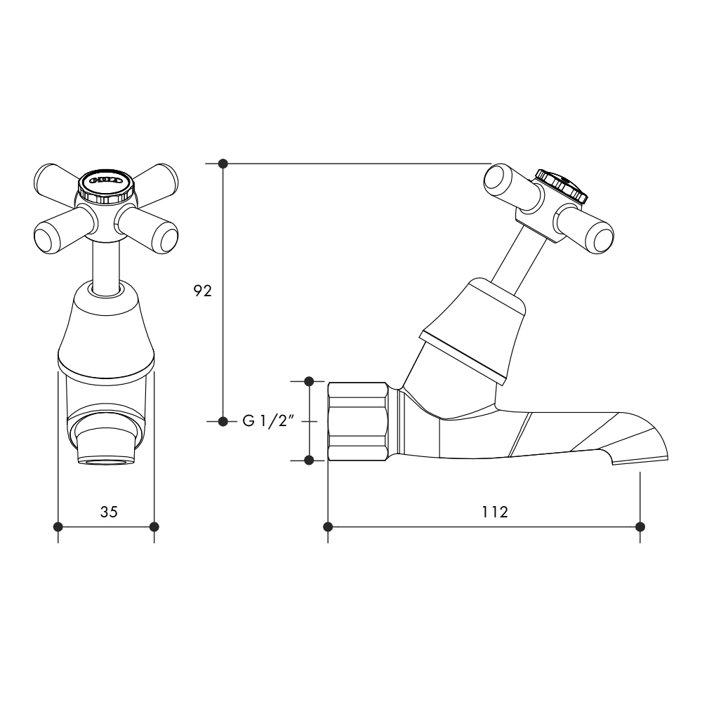 | Whitehall Chrome Plated Fi Bib Tap 45° Cold Anti Vandal With Jumper Valve Lead Free | 9718LF |