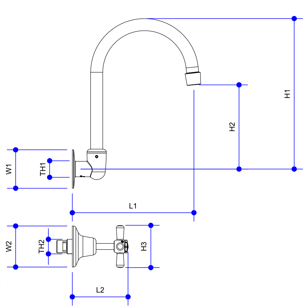 | Whitehall Chrome Plated Wall Sink Set Anti Vandal Ceramic Disc | 7242 |